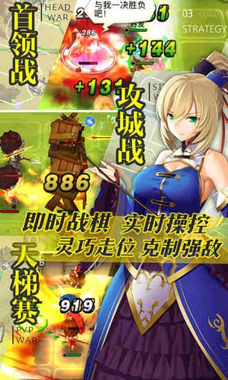 全新五大武将类型:防御、近战、远程、法术、辅助。武将特性大曝光每种武将有着不同的攻击范围,就算是类型相同攻击范围以及方式都会有着不同哟!即时战棋的全新玩法给你带来前所未有的脑力挑战!