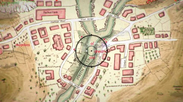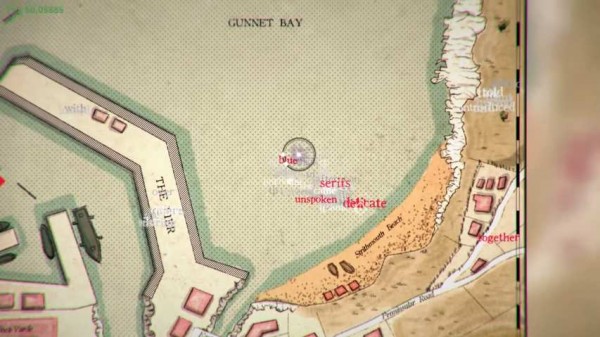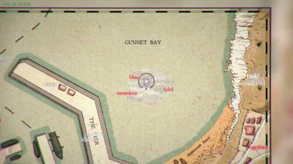 《》的画面比较简单,几乎可以看作 Ulfrey 岛风格各异的历史地图合辑,不过它却隐含着形而上的意义——玩家探索的步伐指向哪儿,那儿就会出现连串打乱顺序的单词,通过字与词之间的重组,你才能得到完整而正确的事实与下一步的指引。当然,虽然游戏希望玩家能达成完美的匹配,但在这一过程中即便没有拼凑出正确的答案,也将得到不一样的,更加个人化的剧情走向。
