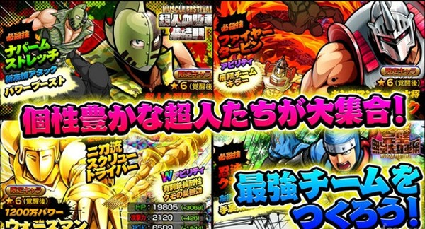 《金肉人》(キン肉マン)是出自日本漫画家蚵仔煎(ゆでたまご)之手的漫画作品,自1979年开始连载,于1987年完结,在动漫迷中间有着一定的影响力。近日获悉 DeNA 联手 COPRO 开发同名改编手游《金肉人 MUSCLE SHOT⁄キン肉マン マッスルショット》,并且开启了事前登录活动。