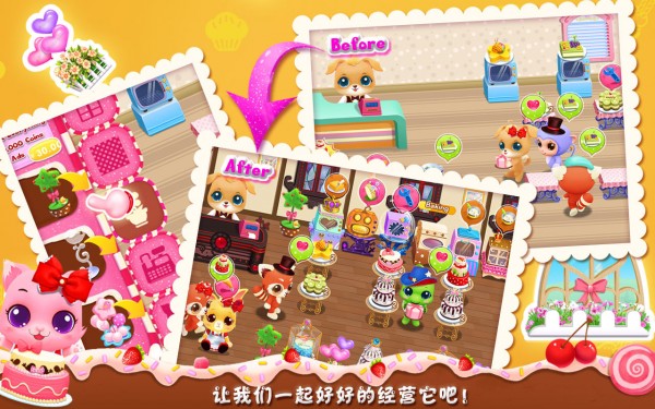 结束了一天的经营,就可以用赚来的金币升级店铺啦!一定要努力经营并且好好装修自己的店面哦,因为其他玩家很有可能会来参观,也许他们还会给你的店面点个赞呢~还等什么,得力小帮手快点加入我们,用你的双手创造甜蜜的幸福滋味,让顾客在温馨的小店里享受甜食所带来的奇妙与诱惑吧。