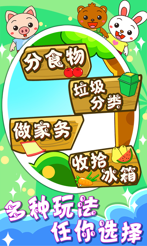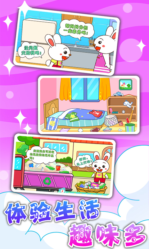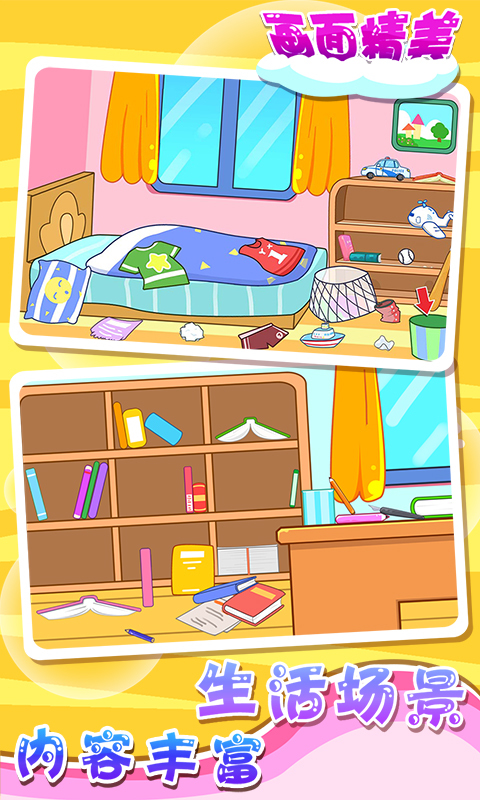 宝宝爱做家务是根据最新的幼儿教育方案设计的一款引导宝宝做家务的早教游戏,有趣的游戏涵盖更多的事物认知,同时培养宝宝爱收拾的好习惯。精美的画面,趣味的动画,模拟真实生活场景,让宝宝在游戏中学会做家务,升级能干的妈妈小帮手。