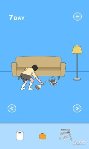 3、点右下图标进入右边房间,拿扫帚,到左边房间用扫帚点沙发得到。