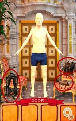 第4关:本关将房间内的衣物都收集起来,分别对应的穿到门前的人身上,即可开门过关。