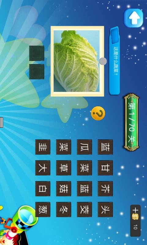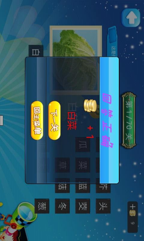 儿童蔬菜认知是一款适合儿童启蒙的游戏。儿童教育,幼教启蒙,智力开发,亲子教育,认识蔬菜,通过看图猜物的形式了解常见蔬菜,包含70种蔬菜,让儿童在玩游戏的同时认识蔬菜,免掉枯燥乏味的学习过程。