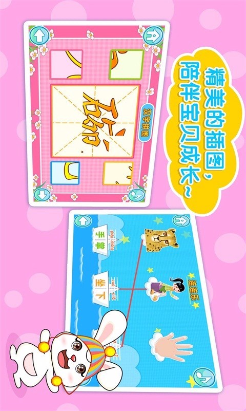 非常适合用于幼儿的识字启蒙应用。汉字是幼儿阶段重要的学习内容,本应用精心编排了多个基础汉字,并配以拼音、笔画、常用词组、句子以及精美的插图,非常适合用于幼儿的识字启蒙。