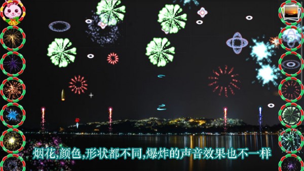 3、可以让宝宝自己点击,选择喜欢的烟花燃放;