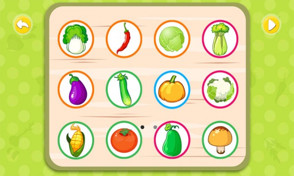 这里有充满各种表情的蔬菜,配合宝宝点击的时候,分别给出不同的反应,还会有宝宝各种可爱的配音哦!更好地激励宝宝们学习的积极性;