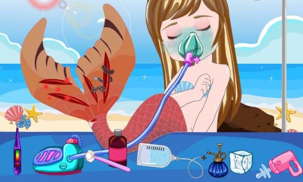 美人鱼尾巴治疗是一款有趣的儿童休闲小游戏,一天海上刮起了大风,大浪把一条美人鱼冲到了岸边,美人鱼的尾巴受了严重的伤,你作为一个外科医生,快点来救救美人鱼,帮她治疗受伤的尾巴吧!