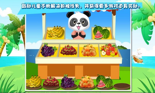 游戏中,小朋友们帮助可爱的乐乐熊猫分配水果, 按照游戏规则成功的完成分配水果或相关数字的任务后, 能赚得相应的奖励, 直到最后“水果”商店就可以开张了!与乐乐熊猫其他的受小朋友喜爱的游戏一样, 这款数独水果商店游戏操作简单明了, 更配有愉快活泼的声音指导。