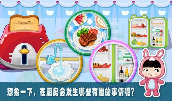 在《神通厨房》应用中,我们提供【洗碗池】【餐桌】【面包机】【冰箱】这4个独具特色的场景,每个场景包含1-3种精致的小游戏玩法,小朋友们不仅要为自己准备一片烤面包作为早餐,还要接触到整理冰箱,清洁餐具这些家务劳动,小朋友们表现这么棒,我们还特别为宝贝们准备了一顿丰盛的晚餐, 做为最后的奖励哦。