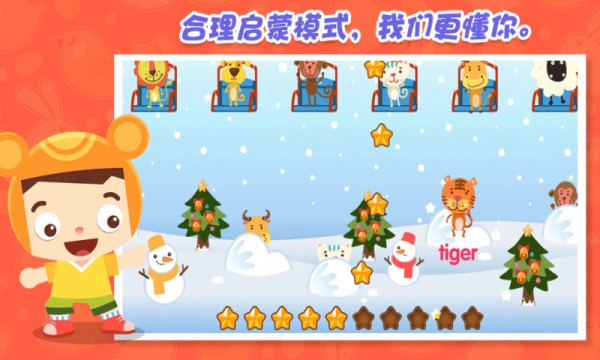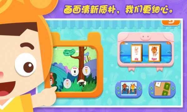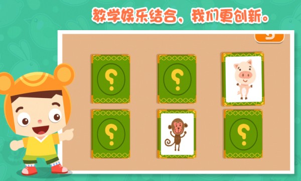 熊熊英语动物篇分为三个部分:情景动物认知,卡片双语教学,游戏复习强化。以情景动物认知为主,辅之以卡片教学,游戏复习,不断在轻松的氛围中强化孩子对英语的认知,实现有理,有趣,有效的英语教学模式。
