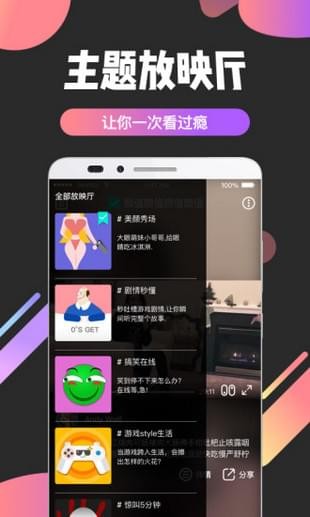 3. 支持通过推荐、搜索功能,点击主题放映厅等快速找到感兴趣的视频