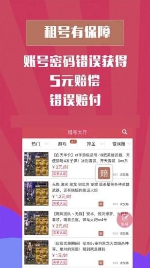 是一款游戏租号APP,上面有各式各样的热门游戏,如果你想玩高端游戏账号或者其他任何游戏,那么你来满足你的一切需求。