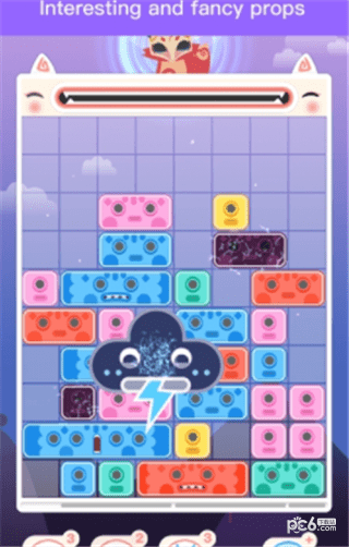 3、多种趣味道具,帮助你快速闯关(雷电消除,快速破块、方块爆裂)!