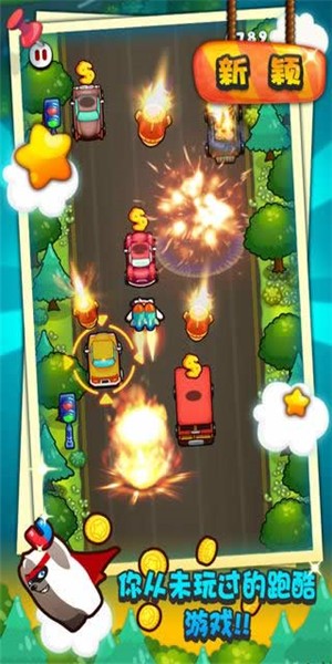 你没有看错,超级华丽街道追逐战正在进行。是一款创意迸溅的跑酷游戏!可爱的忍者小熊将功夫与卖萌进行到底!清新靓丽的色彩,适合各类小清新儿;丰满的游戏感,满足暗藏的那些重口味儿!忍者小熊带给你的不仅是无限卖萌,还有简单纯粹的游戏快乐!游戏方式简单直观,只需要通过滑动屏幕就可以让忍者小熊做出左、右、前,三个方向的跳跃。掌握好跳跃的时机与距离,便可轻松进行游戏。还有多种绚丽道具,潜力无限的技能,等着你大施拳脚哦~!修行的路上难免遇到重重阻碍,用尽全力去帮助他吧!躲开各式各样的汽车、卡车,获取增值道具来使小熊跑的更远,一起来挑战一下吧。