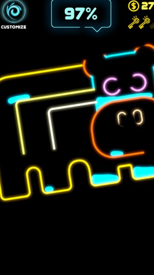 1、游戏的画风十分清爽酷炫,霓虹灯的主题分外亮眼,让人看上去就非常想玩。