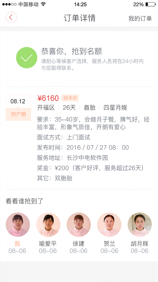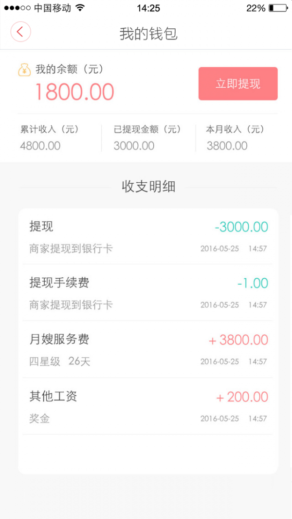 1.微信分享我的简历可以发送月嫂本人的头像了2.有新的订单或者订单状态有变更时出现气泡提示3.我的钱包 增加添加银行卡及设置密码功能,提现需要输入密码