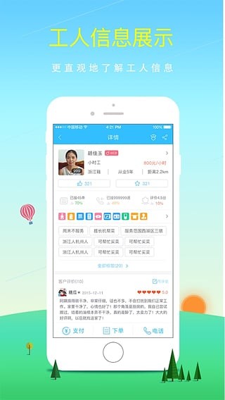 【下单功能】可自主下单,更加方便便捷【直接支付】直接支付功能上线,让支付更简单【评价功能】用户可直接评价,对评价都实行全透明公开【准确定位】地图模式实时定位,周边商户/工人一览无余【真实可靠】入驻商户/工人,实名认证,百分百真实可靠