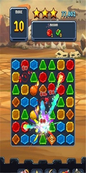 1、与传统的三消模式相同,移动宝石使相同颜色的连线并消除