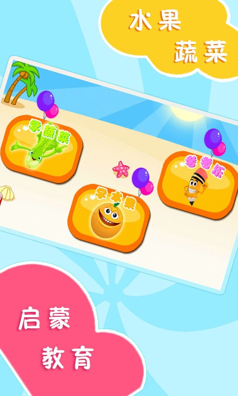1、从学蔬菜到学水果,再通过考考乐,分步学习。