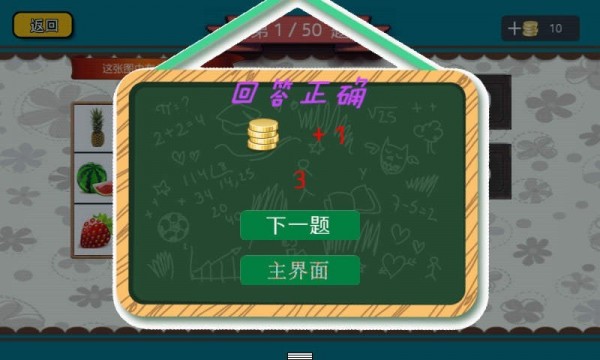 是一款儿童益智类应用,游戏采用当下流行的看图选答案模式,集合了动物,水果,蔬菜,生活用品,让儿童在玩游戏的同时既能算术、又能认识物品,一举两得。