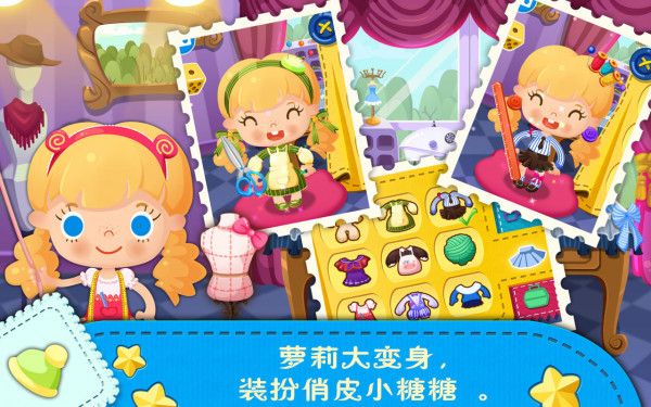 糖糖时尚屋是一款寓教于乐并充满想象力的互动性游戏,魔镜魔镜告诉我,哪里有世上最漂亮的衣服?小伙伴们,糖糖时尚屋开业啦,精致的连衣裙、酷酷的T恤、甜美的短裙让你置身时尚乐园。剪刀动一动、针线扭一扭、缝纫机抖一抖,各种特色款式变出来。精湛的手艺,亮眼的设计和独特的时尚风格肯定能惊呆你的小伙伴。看到这么多的美衣,爱时尚、爱创意的你有没有心血来潮想要自己动手设计呢?