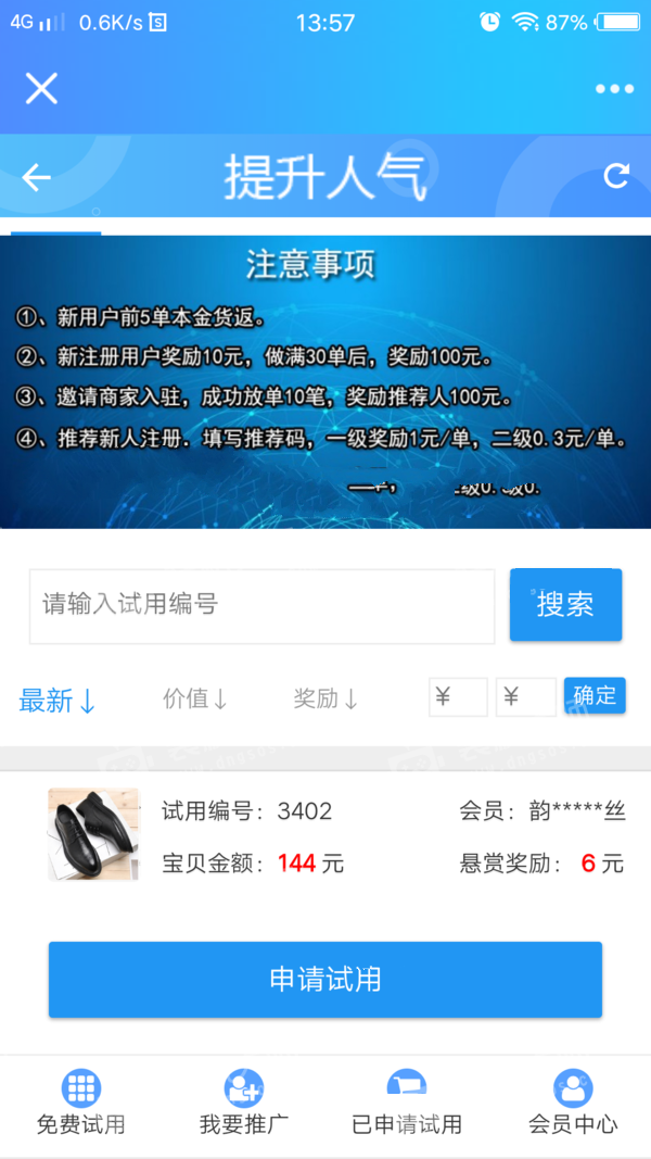 【审核要求】半年3心,可绑10个号,每个号每天3单,不能降权,安全号。