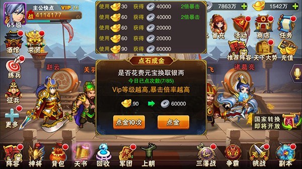 游戏里中后期银币会非常缺,建议大家前期能获得银币的地方,一定不要漏下,尽量拿全,尤其是每天的点金,最好是根据你的VIP等级点全,还有就是送花,送花可以获得很多银币。