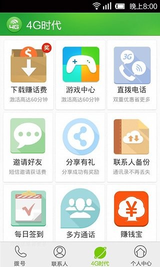 4G掌上宝电话为用户提供一个免费的网络电话app,通过4G掌上宝电话用户可以直接用移动网络或者WIFI拨打电话,减少电话费的实用,而且通话质量不错,内容清晰,长时间实用还有更多优惠。