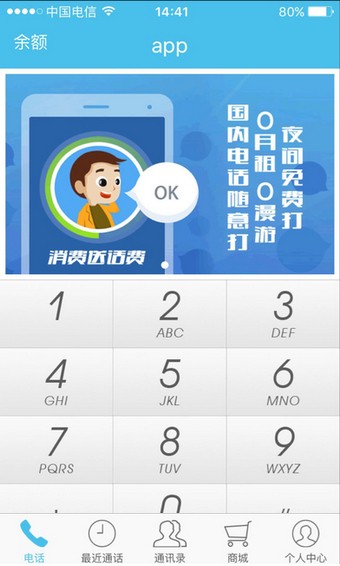 app是一款帮助您解决充话费等问题的客户端应用,在软件中可以享受优质的通话服务,让您的通话没有盲区,尽情与好友畅聊,并且还有优惠的充话费服务,帮您省钱。