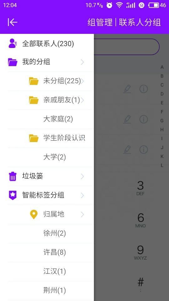 2、智能分组归类,根据归属地,根据亲密度,根据家乡···使用越多,归类越详细,人脉轻松管理管理;