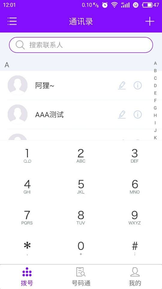 3、快速T9查询,T9快速查询,只要输入首字母,快速定位到联系人;