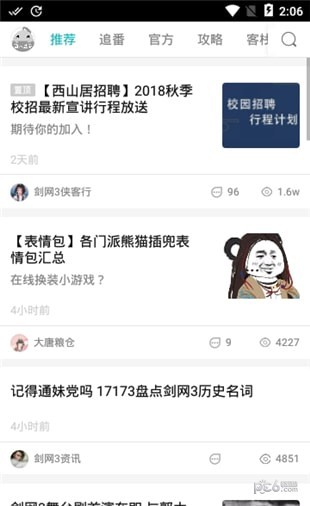 app,专为剑网三玩家们打造的辅助软件。在 app中你可轻松查询游戏相关资讯信息,在线观看各类游戏直播视频,以及跟网友们聊八卦等。