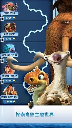以电影为主题的世界 — — 穿越冰谷、 恐龙世界,以及许多其他环境中灵感冰河时代,当你解锁新的情节和宝石匹配的谜题。