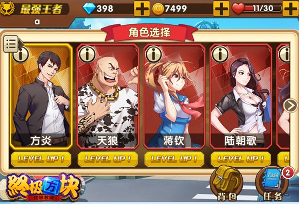 量身订制 人气IP热度不减《终极方块》是紧随《终极酷跑》之后,又一款为《终极教师》量身订制的游戏。游戏不仅拥有原著小说的正版授权,更因网剧和《终极酷跑》带来的人气,使同为系列游戏之一的《终极方块》在未经发布时就引来了众多玩家的期待,使这款人气IP的关注度又上新台阶。全新理念 新型消除多种挑战与传统的方块消除类游戏不同,《终极方块》采用全新的设计理念,不仅实现了在休闲游戏中高度还原原著小说的经典情节,为人物的多种状态精心设计不同的动作表现,更将真人同屏对战加入到游戏当中,首创消除类游戏与竞技PK玩法相融合的全新玩法。此外,小巧的微端,流畅的游戏体验,丰富的PVE玩法,也是这款游戏引人注目的亮点之一。竞技与娱乐并存,加上劲爆的IP,《终极方块》无疑已“赢在起跑线上”。