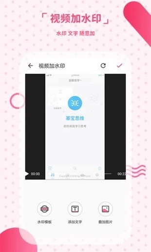 【视频水印】:水印微信短视频,后台水印视频不用等待,能够给原创或者下载的视频加上自己的商标,让传播更有价值,保护原创。