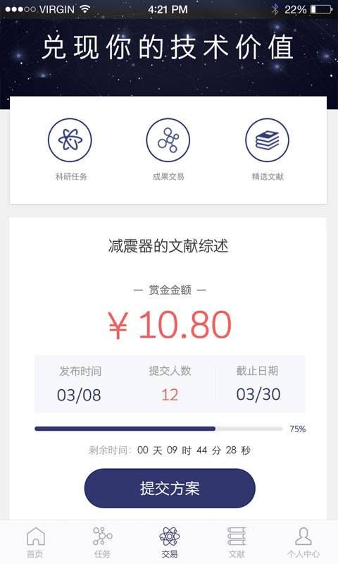 同时用户可以在橡领界将自己的技术成果进行交易。