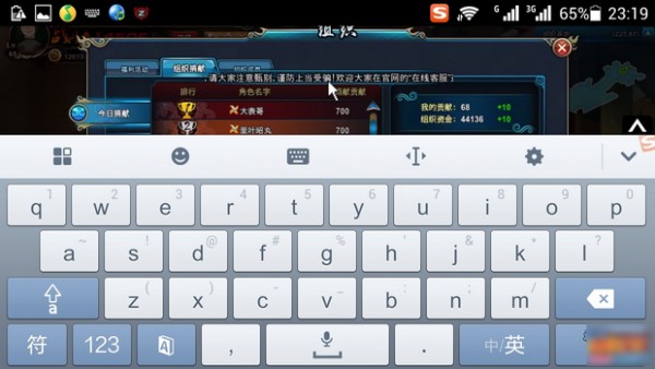 9.刷黑市,刷副本,组织捐献,点组织技能等都可以完成。友情提示:打架就是卡别人卡自己,单机功能几乎都可以顺利完成。小技巧:点击右下角的鼠标可以切换模式,有拖拽屏幕模式等等。点击键盘可以调出小键盘。