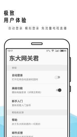 app是一款东大学子登录校园网必备的客户端应用,手机版帮助您自动连接网络,随时随地尽情网上冲浪,并且功能强大,还提供免流服务,方便您的校园生活。