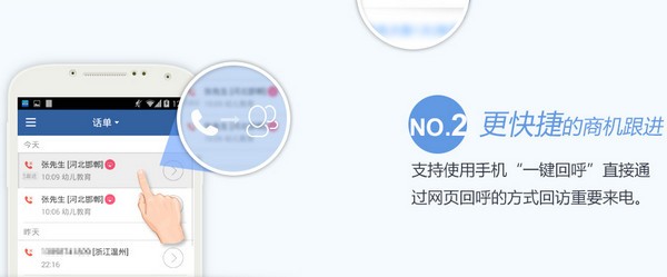 更快捷的商机跟进:支持使用手机“一键回呼”直接通过网页回呼的方式回访重要来电。