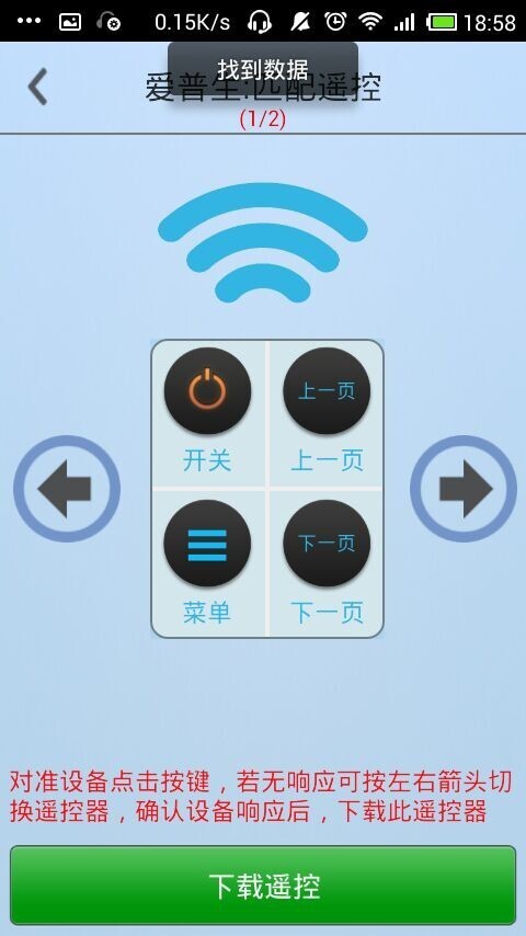 几维遥控器是一款基于智能手机的万能遥控器软件,内置海量家电遥控数据库,搭配我们的手机小配件或者部分手机的内置红外,即可实现一个APP,掌控家中空调/电视/机顶盒/DVD/投影仪等各类家电。从此,你不用再面对家中一堆的遥控器无从下手,一机在手,多种遥控快速切换,走到哪控到哪~
