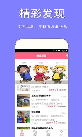 【附近乐园】聚焦于儿童的共享娱乐与教育,精准获取附近信息,身边的免费儿童娱乐与教育体验服务一键领取。