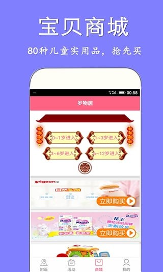 【宝商城】 0~12岁的儿童,在成长的过程中,从生活、科技、娱乐、安全四个方面,有很多需要去选择的商品,宝商城的岁物居将为12岁以下儿童,分4个不同的年龄段,去精选适合孩子的商品,与厂家实现直销模式,让孩子需要的物品不再那么贵。