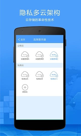 隐私云云端不可见技术,就是云端管理人员也无法拷贝和查看您的数据,多个独立云服务器随机存储,实现隐私数据、个人照片、通讯录、备忘录安全存储。,是北京古盘创世科技发展有限公司经过多年研发,推出的一款基于多云架构的云端不可见隐私安全产品。该产品可在不知晓用户密码和上传内容的前提下,对用户提供方便快捷地操作和存储。安全群组功能,使企业和个人都能享受到全新的云端安全体验。同时终端系统和云端系统对现有的网络入侵和无线入侵具有强大的免疫力,让您的数据得到全方位的保护!
