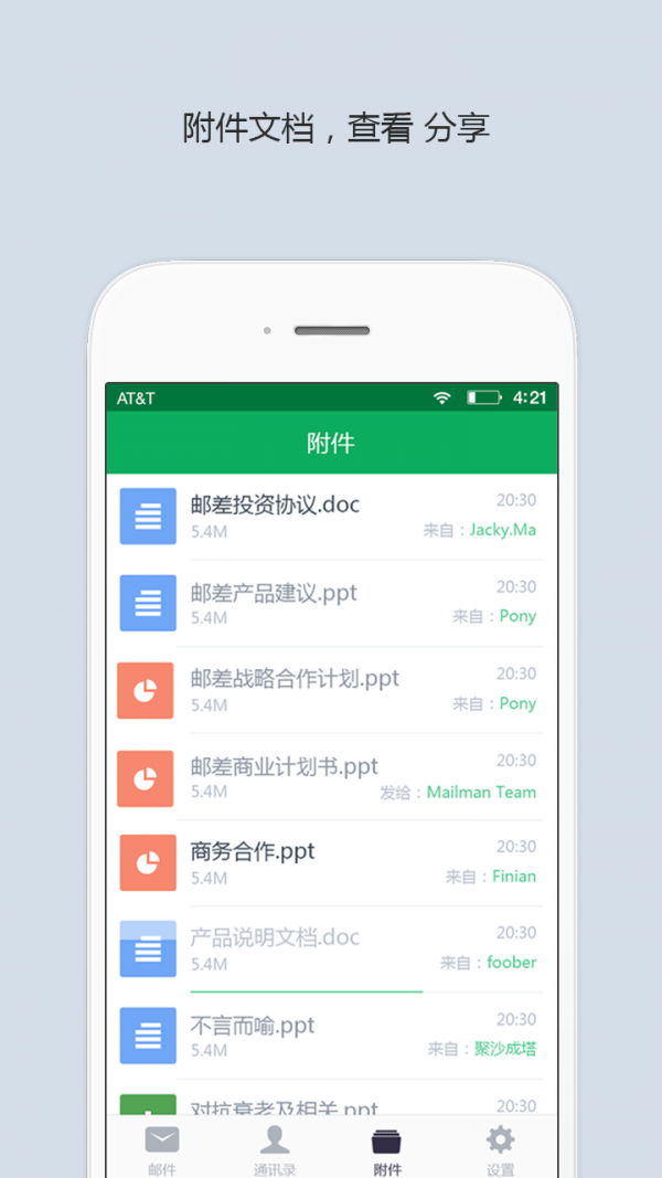 另外,「」还把附件集中起来管理了。我们同样可以在应用底部跳转至文件界面,这里存放着下载过的全部附件,应用内支持一般的办公文件打开阅读。