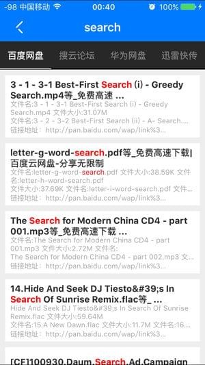 app是一款基于WEB云搜索技术的移动搜索应用,app通过关键词搜索,用户可以搜索到百度云盘等共享型云资源,利用app可极大的提高并完善了的用户的搜索效率和移动端体验。