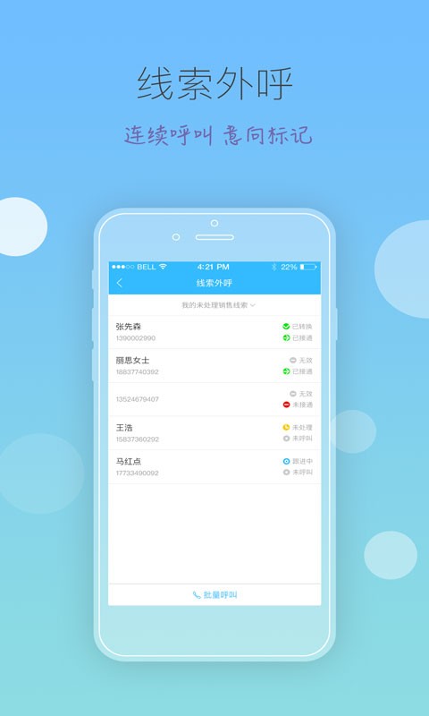 【呼叫中心】:可外呼通话、节省话费、保留沟通记录、实时录音,方便听取。
