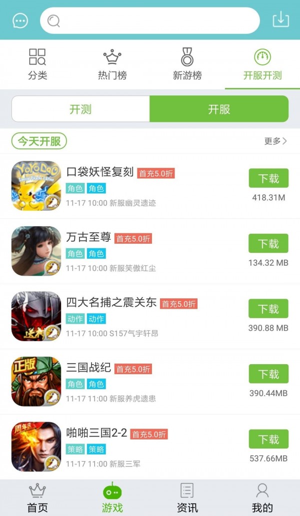 游戏鹰平台是一款集资讯与游戏为一体的游戏app。聚集当下最热门的各类手游,提供第一手游戏资讯,海量游戏礼包,是游戏爱好者的天堂!