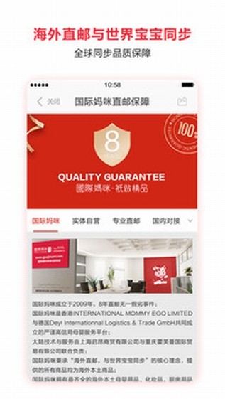 答:国际妈咪成立于2009年,由香港国际妈咪易购有限公司INTERNATIONAL MOMMY EGO LIMITED与德国Deyi Internationnal Logistics & Trade GmbH共同成立,大陆技术与服务由上海启昂商贸有限公司与重庆霍夫曼国际贸易有限公司负责,国际妈咪秉承“海外直邮,与世界宝宝同步”为核心理念,提供的所有商品均为海外本土商品,与发达国家的宝宝用品同步(并非针对大陆的进口版商品),以海外直邮的高诚信方式赢得了妈妈们的欢迎,国际妈咪为国内少数拥有自己独立海外实体公司与仓储的企业。