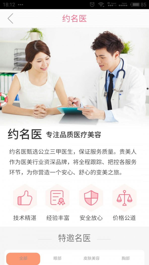 这是一款有关美容和微整形的app,其作用是帮助更多的人了解医疗美容项目,寻找到合适自己的能让自己变美,变自信的方式。医疗美容,做为一种特殊的医疗行业。它起源于二战之后,人们为了帮助那些,因为战争而毁容的士兵和人名。为了帮助他们走出生活的阴影,能够直面别人的目光。为了帮他们重新找回生活的自信。而在医疗行业发展出来的一个分支就是医疗美容。